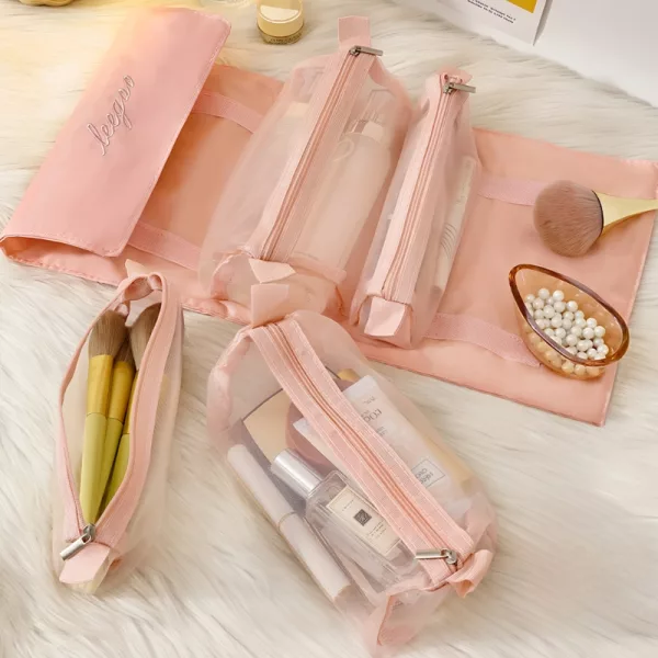This folding cosmetic bag allows you to sort your beauty products more efficiently. The compact design fits easily into carry-ons or backpacks, saving space. It is ideal for quick getaways, long vacations, and daily use. Durable zippers and waterproof material protect your items from spills and leaks.